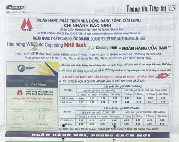 Năm 2006, khi nhận nhiệm vụ là người đứng đầu chi nhánh Ngân hàng phát triển nhà đồng bằng sông Cửu Long – MHB, một thương hiệu non trẻ, xa lạ với cả thị trương phía Bắc và tỉnh Bắc Ninh, để phát triển khách hàng hiệu quả nhất, chi phí thấp nhất qua truyền thông của nhà nước bằng hệ thống Đài phát thanh truyền hình tỉnh Bắc Ninh, từ ý tưởng đến hành động, chỉ trong quí 2-2006 sau thời gian ngắn khai trương hoạt động Chi nhánh MHB Bắc Ninh cùng Đài BTV cho ra mắt chương trình NGÂN HÀNG CỦA BẠN đến nay đã được gần hai chục năm, vẫn là mốc son xứng danh là CHƯƠNG TRÌNH SÂN KHẤU HÓA NGHIỆP VỤ ĐẦU TIÊN CỦA NGÀNH NGÂN HÀNG VIỆT NAM.